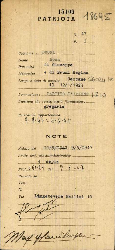 - 66 Bruni, Rosa (Ceccano, Frosinone, 1923 gen. 12), commissione: Lazio