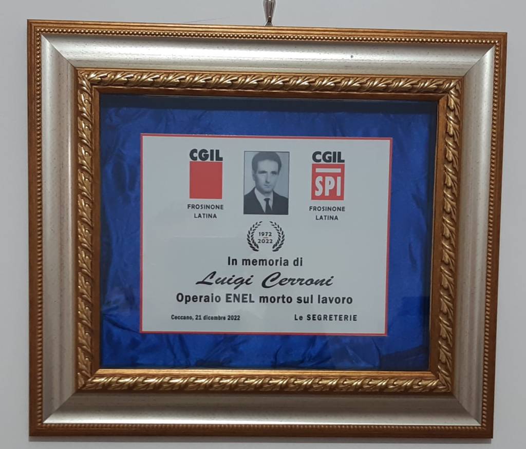 Ancora è vivissimo in me quel ricordo. Conservo gelosamente la medaglia, importante riconoscimento in memoria dei caduti sul lavoro, e la pergamena che venne consegnata nelle mani di mia madre, così come alle altre vedove e agli orfani dei caduti sul lavoro. Davvero tante sono state le iniziative a cui si è dato vita su questo tema, a partire da quelle promosse dal già sindaco di Ceccano Angelino Loffredi, con la posa dei garofani rossi sotto la stele di marmo nella ricorrenza del 1 maggio. Però, andrebbe ricordato a tutti che la Giornata Nazionale vittime sul lavoro va celebrata, ricordata civilmente da parte dei Comuni, Province, Regioni, nella data del 9 ottobre. Purtroppo, in molti casi non si ricorda il necessario rispetto che meritano tutte le vittime del lavoro. Non ricordare è una grave colpa, visto che il fenomeno è ancora dolorosamente presente e le morti sul lavoro sono costantemente in crescita. Il sindacato e le istituzioni devono combattere, impegnarsi, denunciare, investire sui controlli, obbligando le imprese ad investire sulla sicurezza e la salute delle persone sul lavoro”.